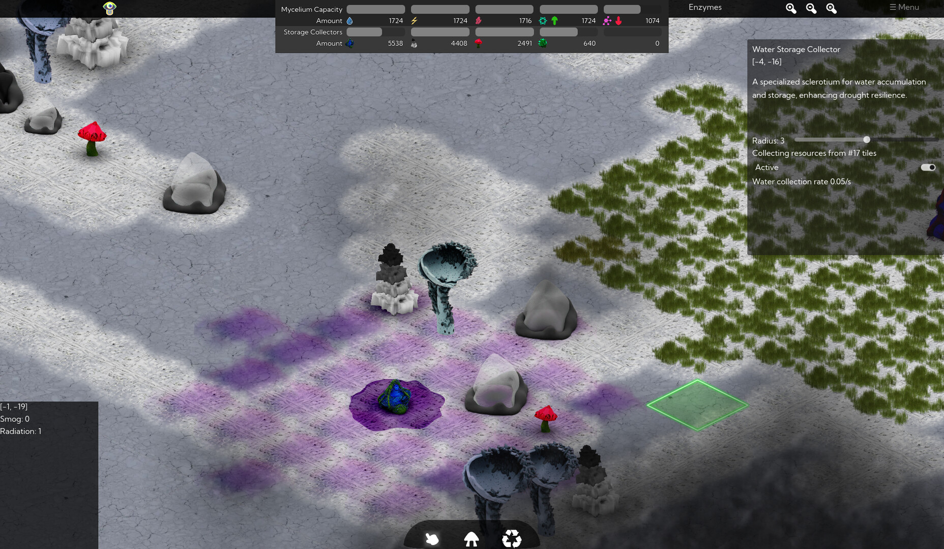 Trò chơi chiến thuật góc nhìn isometric, bạn chỉ huy một tập hợp nấm trên Trái đất hậu tận thế. Sử dụng sợi nấm để xây dựng cấu trúc, quản lý tài nguyên và giảm thiểu các mối đe dọa môi trường. Lựa chọn của bạn định hình sự cân bằng giữa sự sống và hoang tàn