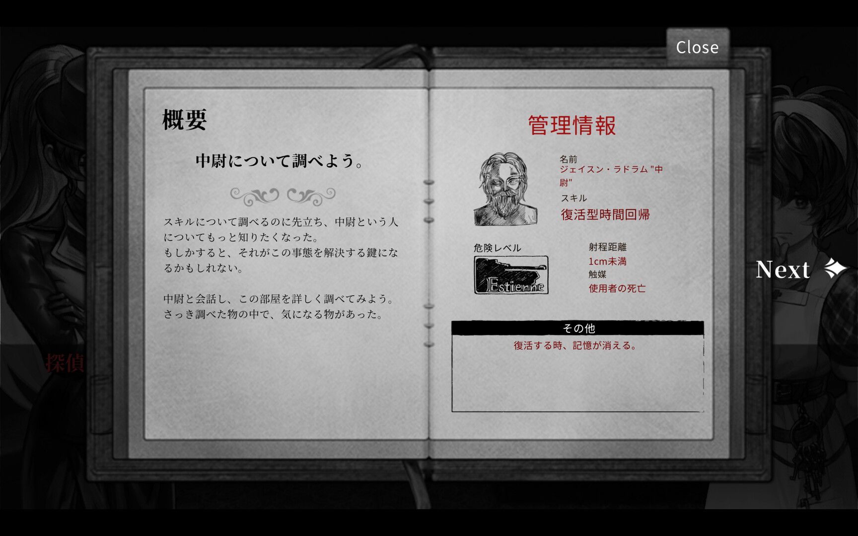 蘇生する能力を持った超能力者である中尉は、寿命となり老いて死ぬ時を迎えました。ところが、彼の超能力は老いて死んだ中尉を生き返らせ、中尉は15分ごとに老いて死に生き返るループに陥ります。プレイヤーは探偵となり、中尉の能力を調べ、彼が永遠の死を迎えられるように手助けしなければいけません。