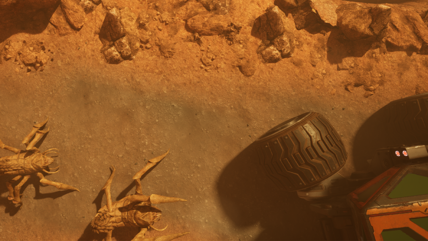 #SURVIVAL: Develop, collect and use batteries, water, food and spare parts in the ruins of alien and human settlements. They will help you survive and deliver transport and cargo to your destination.