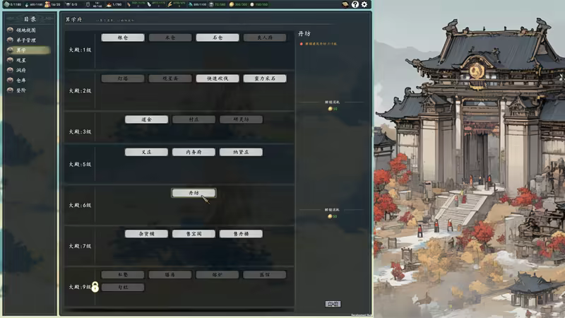 Hơn 30 công trình và kiến trúc chức năng: Hệ thống xây dựng kiểu sandbox cho phép bạn phát triển một ngôi đạo tràng từ nơi hoang phế thành một đạo giáo hùng mạnh.