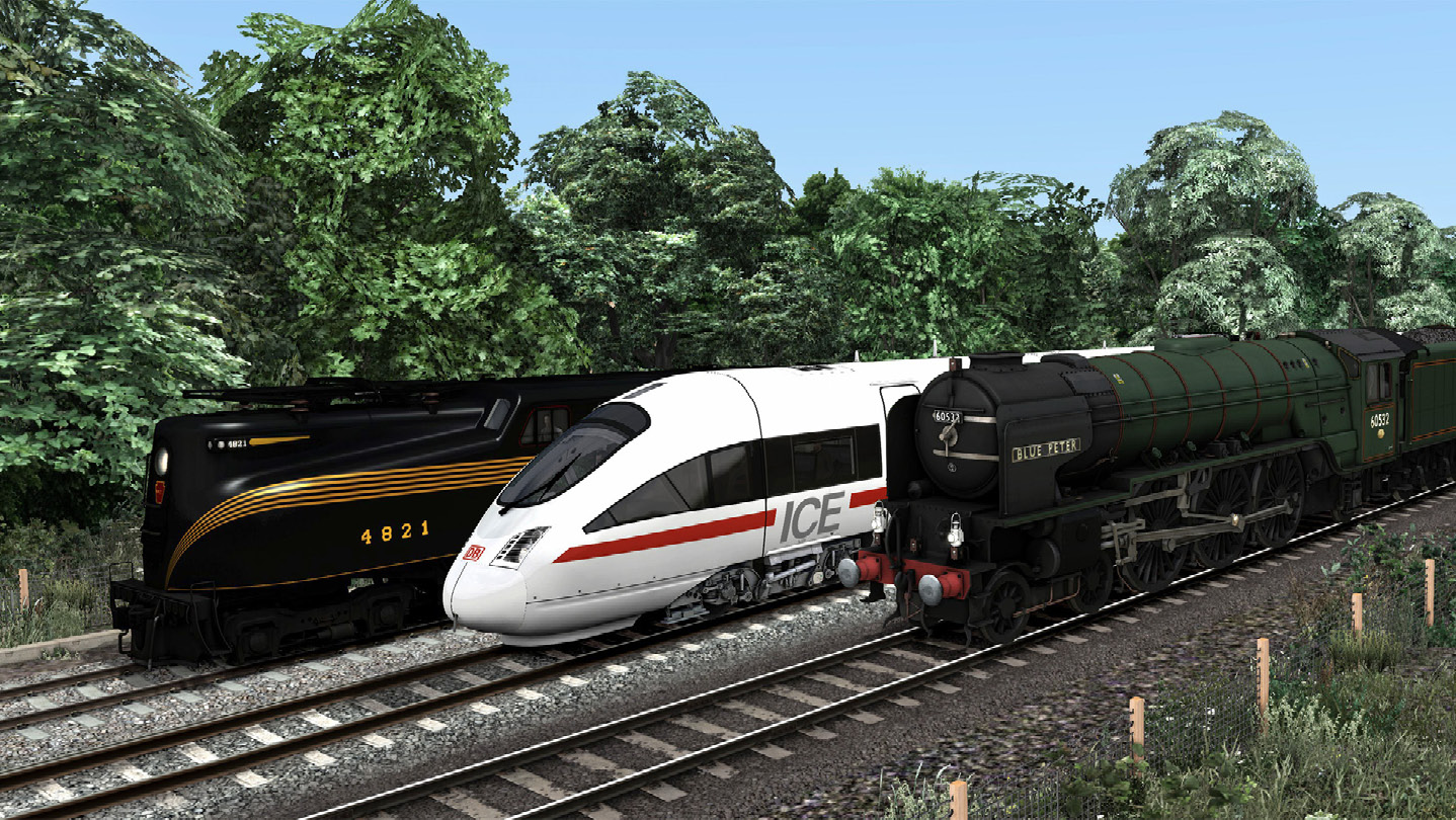 Celebrate the 15th Anniversary of Train Simulator with this special scenario pack. This pack includes 15 new scenarios and three iconic locomotives. The British steam legend LNER Peppercorn Class A2 ‘Blue Peter’, the DB BR 411 ‘ICE-T’ high-speed EMU, and the futuristic looking Pennsylvania Railroad Class GG1 with its striking art deco shell.