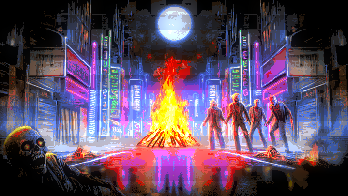 The game's intro video and ingame backgrounds were first created with 3D renders and then styled using Stable Diffusion. However, no images were created from scratch with ai. The resulting visuals were then cleaned up and refined using PixageFX and a pixel art editor. Additionally, a large portion of the character voiceovers were done using 'murf.ai' except 'Mike Jack'.