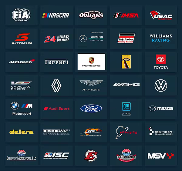 iRacing is partnered with some of the most influential motorsports brands in the world including: