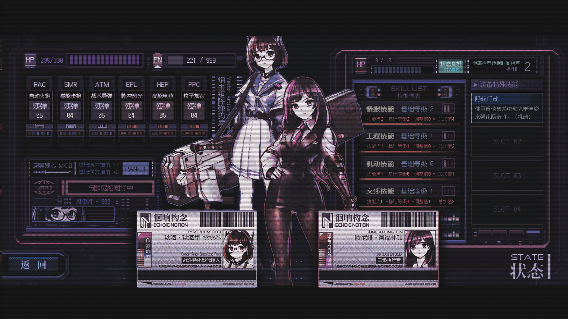 《星幕协约 A.A.A.》是一款以怀旧PC98日式文字冒险游戏为灵感制作的文字类美少女角色扮演游戏。在这个绝望的赛博朋克世界之中,玩家需要像传统桌面角色扮演游戏中那样凭借投骰子和自己角色的技能来克服难题。