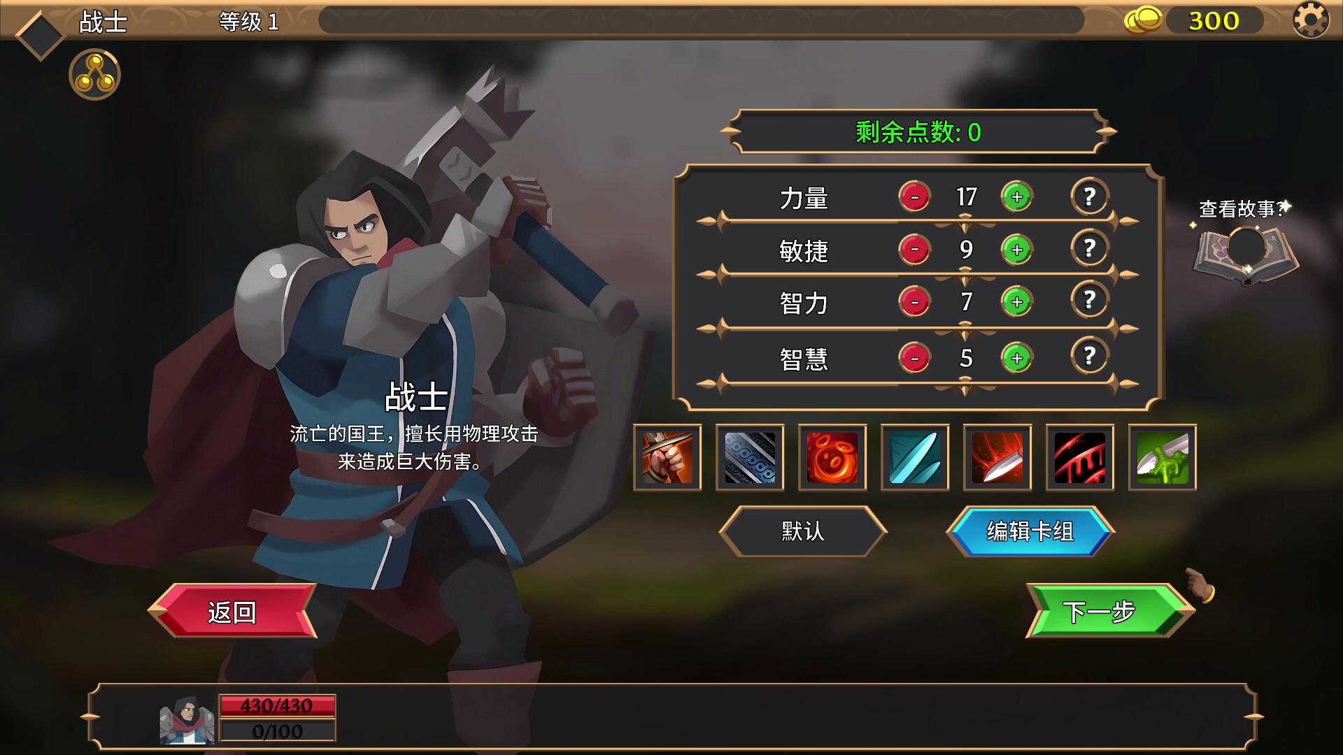 游戏完整版将会包括三个角色,每个角色都有独特的战斗风格和特殊技能。在每局游戏开始前,为角色定制属性和初始卡组,最大限度地发挥他们的技能!在游戏过程中,可以通过提升属性、穿戴装备、获得遗物和学习技能,开辟多种多样的进阶之路。
