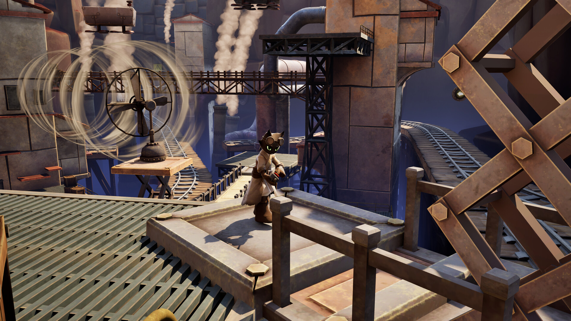 Conductor Cat is a 3D platformer about gathering scrap to engineer creative solutions. You play as Griffin—a cat who currently lives in the faraway town of Matador. He ran away from home as a child and was raised under the supervision of a conductor named Mr. Marco. Twenty years later, he receives a letter from his mother. His father is sick and will likely pass away soon. Griffin is conflicted but embarks on a long journey back to his home country.
