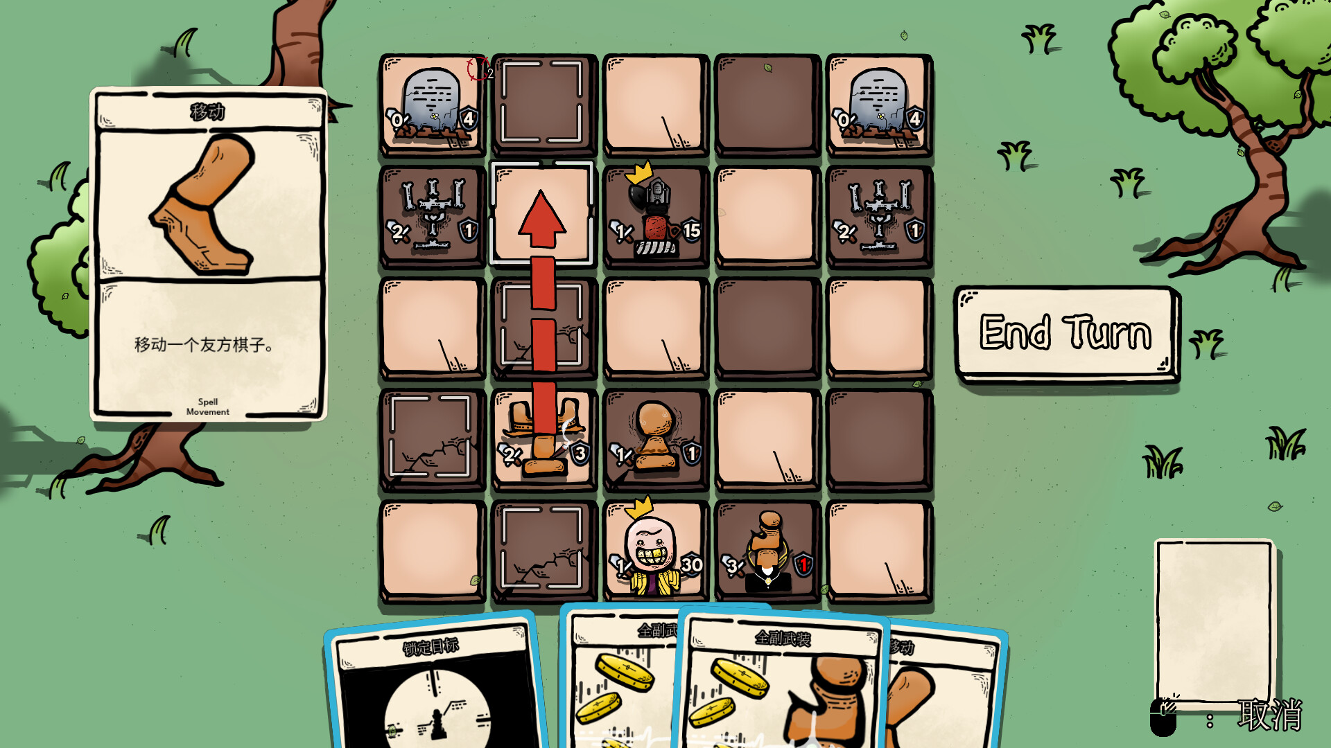 在5x5的缩小版棋盘上,你和电脑轮流行动, 目标只有一个 ----拿下对手的国王。计划好你的每一步,将对手的种种进攻悉数化解, 小心的建立起你的胜势。战胜强敌后,你会获得属于你的奖励,用获得的卡牌去强化你的卡组!