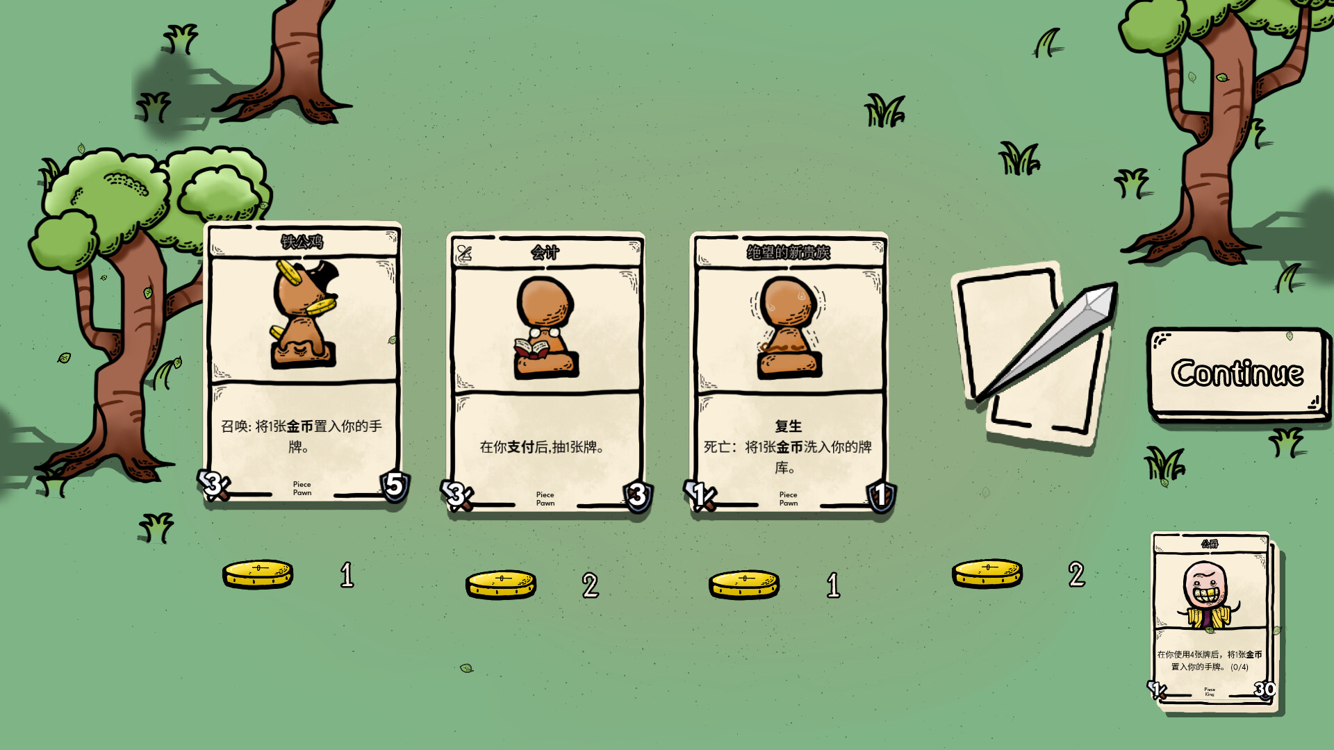 在旅途中你会遇到不同的商店和奖励。用不同效果和组合的卡牌完善你的卡组(是的这仍然是一款卡牌游戏)。每个角色都有独自的卡池,用你的想想去创造完美的卡组吧!