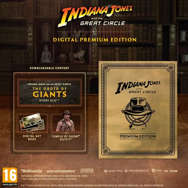 Indiana Jones and the Great Circle™: The Order of Giants Hikâye DLC'sini, dijital bir sanat kitabını ve Indy'nin Kamçılı Adam™ filmindeki ikonik görünüşü Temple of Doom™ Kıyafeti'ni içeren Premium Edition ile maceraya atıl.