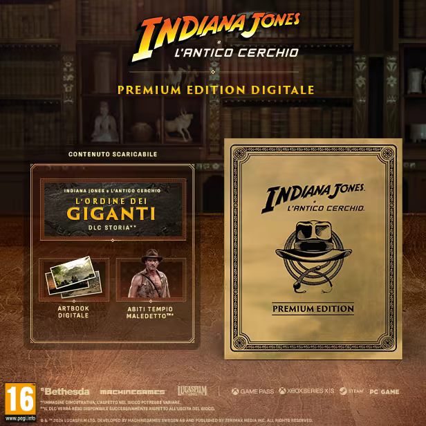 Vivi l'avventura con la Premium Edition, che include il DLC della storia Indiana Jones e l'antico Cerchio™: L'Ordine dei Giganti, un artbook digitale e gli iconici abiti Tempio maledetto™ di Indy presenti nel film Indiana Jones e il tempio maledetto™.
