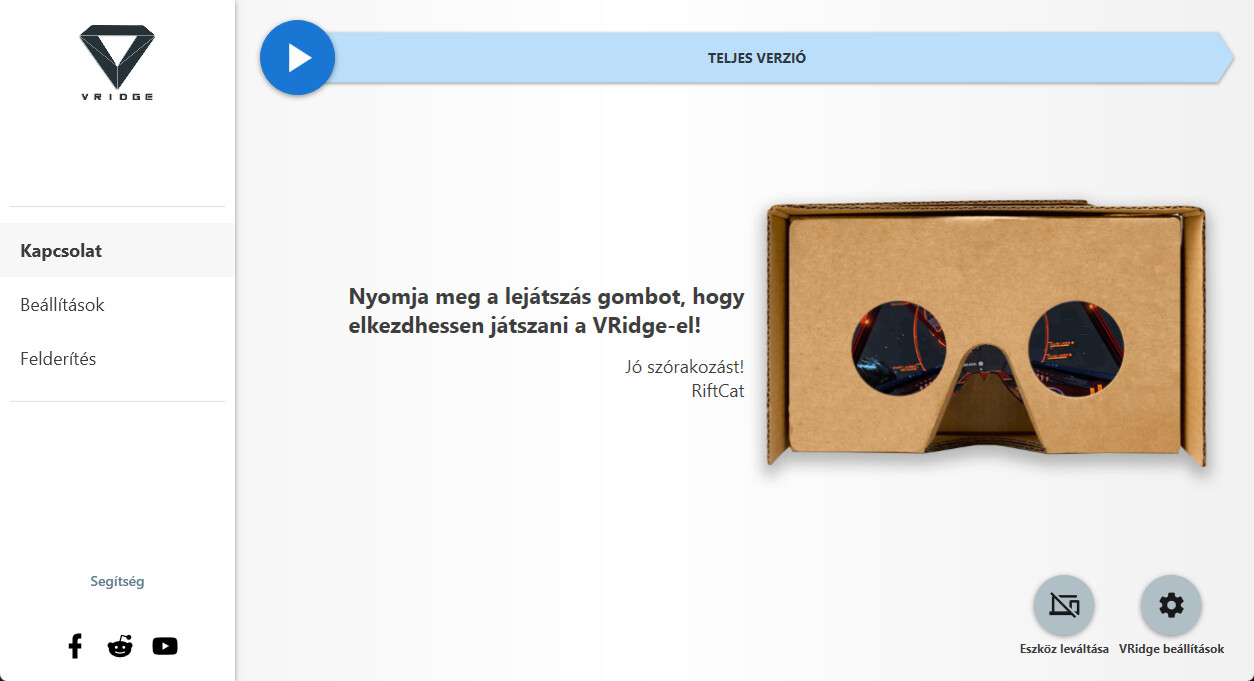 A GameWarp futtatásához a VRidge teljes verziója szükséges.
