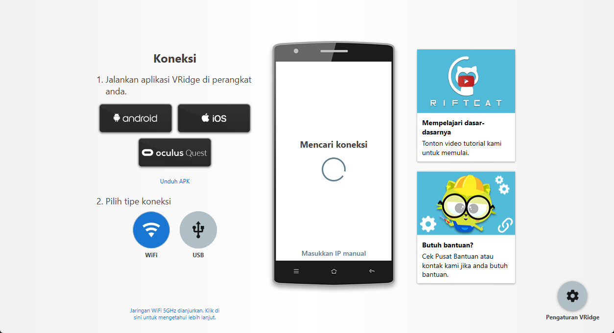 4. Ikuti instruksi bawaan dalam aplikasi RiftCat untuk menghubungkannya melalui WiFi.