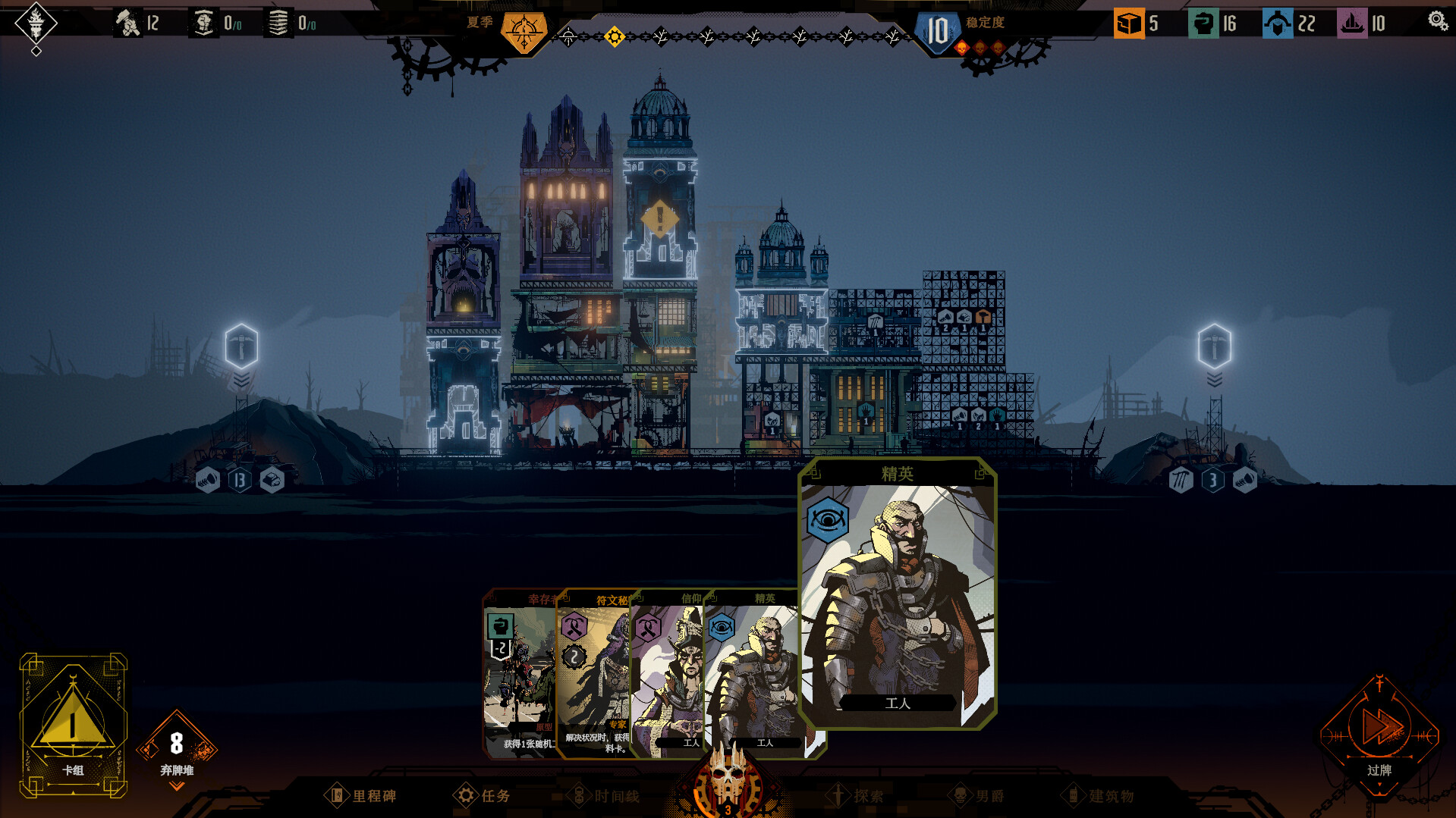 明智地使用你所拿到的卡牌。每一回合都代表着你所生存的一个季节,只要你仍具有稳定度,就仍有希望。如果稳定度归零,你就完了。