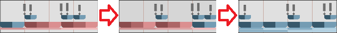 In the example below, clicking the right arrow in the BeatForm Shifter sends the BeatForms to the right. This grouping of notes travel together across the possible locations within the BarForm. As you click, the system will automatically re-calculate the underlying BarForm to give you visual feedback on the emphasis of your new rhythm pattern.