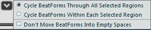 You have a number of options to control how the cycle feature works. The first two dictate whether the BeatForms can travel across the selected regions or are limited to their own bars.