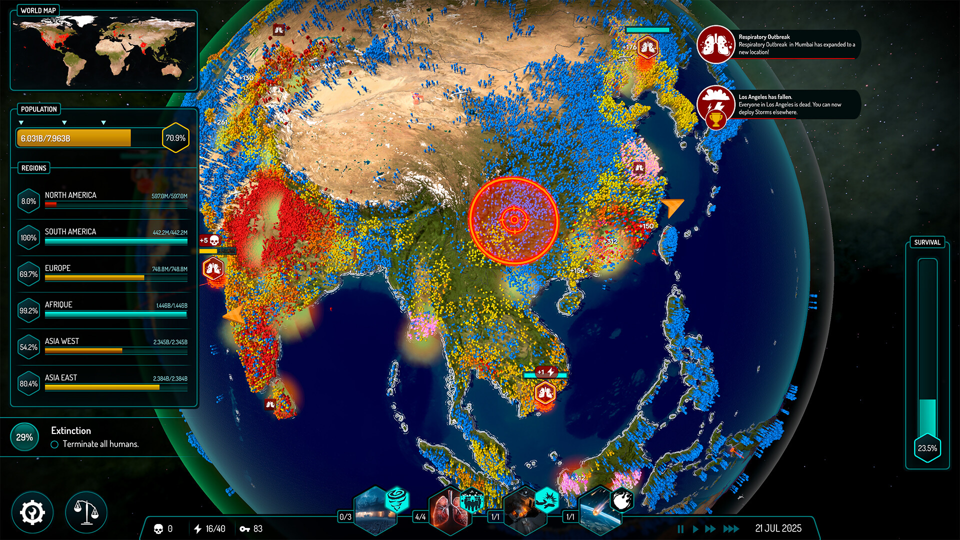 Our unique technology simulates over 80,000* humans simultaneously on screen as you deploy devastating plagues, natural catastrophes, global conflicts and more tragedies. Designed using real-world data for an authentic simulation of humanity’s downfall.