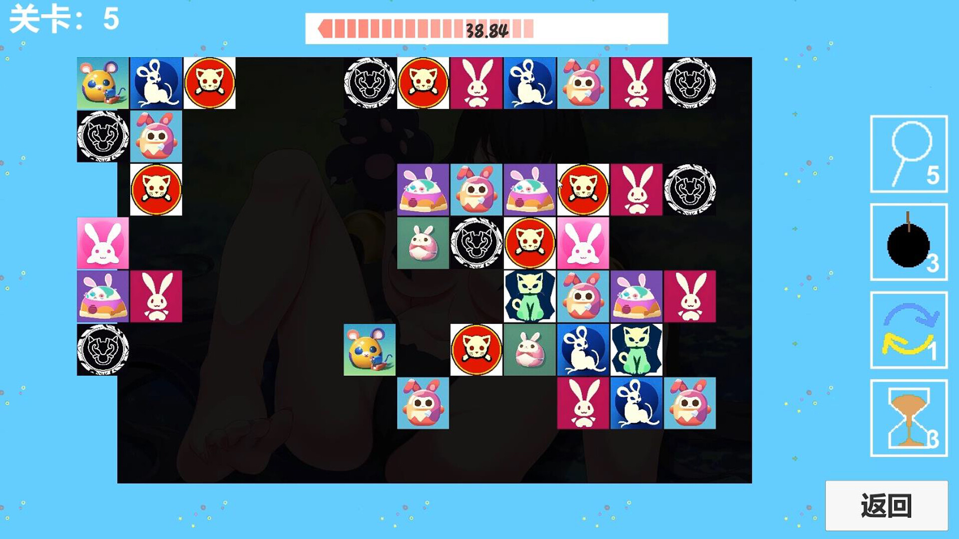 In a limited amount of time, click on the same pattern with the mouse to eliminate it, in order to achieve the goal of clearance. We have items on the right that can help players quickly eliminate patterns, such as automatic connection, bombs that can automatically eliminate the same pattern, and resetting the state where patterns can be rearranged. Let's pass! And then see their pictures!