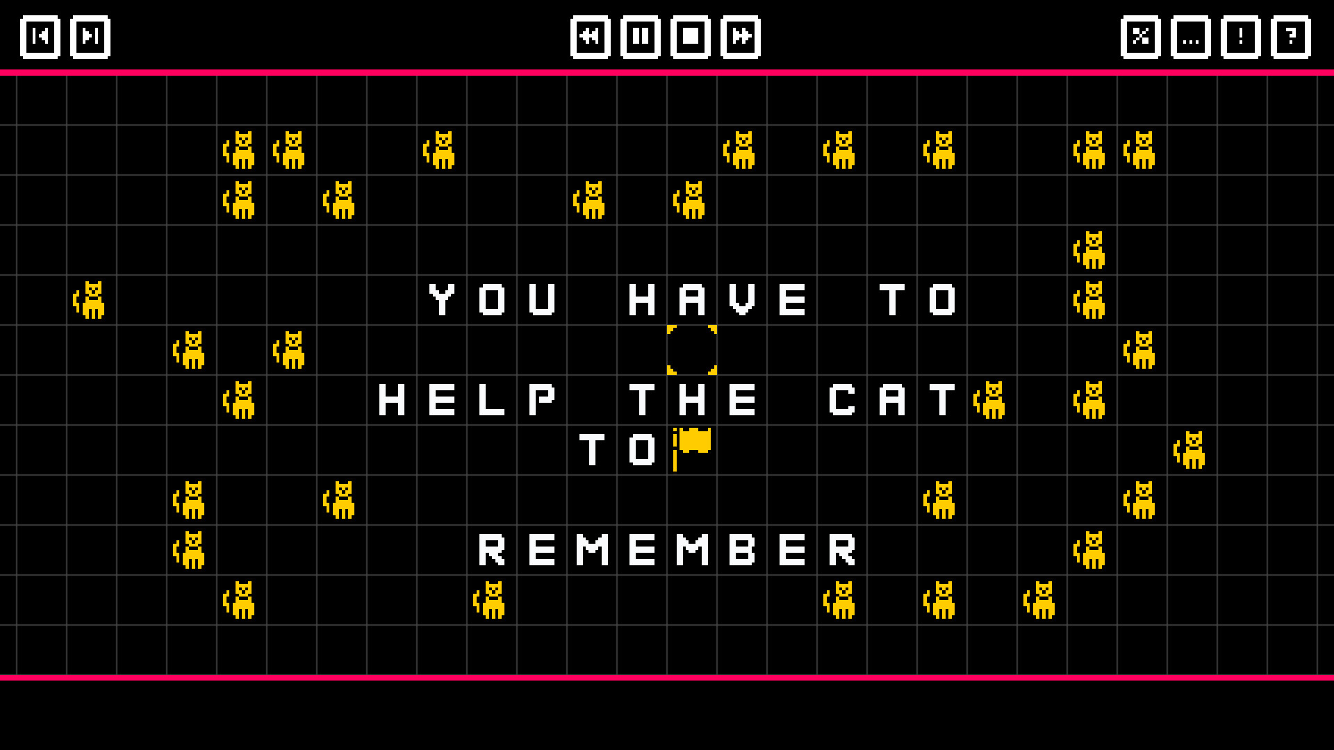 A cat-pushing puzzle game where narratives are puzzle levels. With an emotional story and a little bit of 4th wall breaking. By pushing the cat, you are pushing the cat to think, to remember why they are stuck in this game...