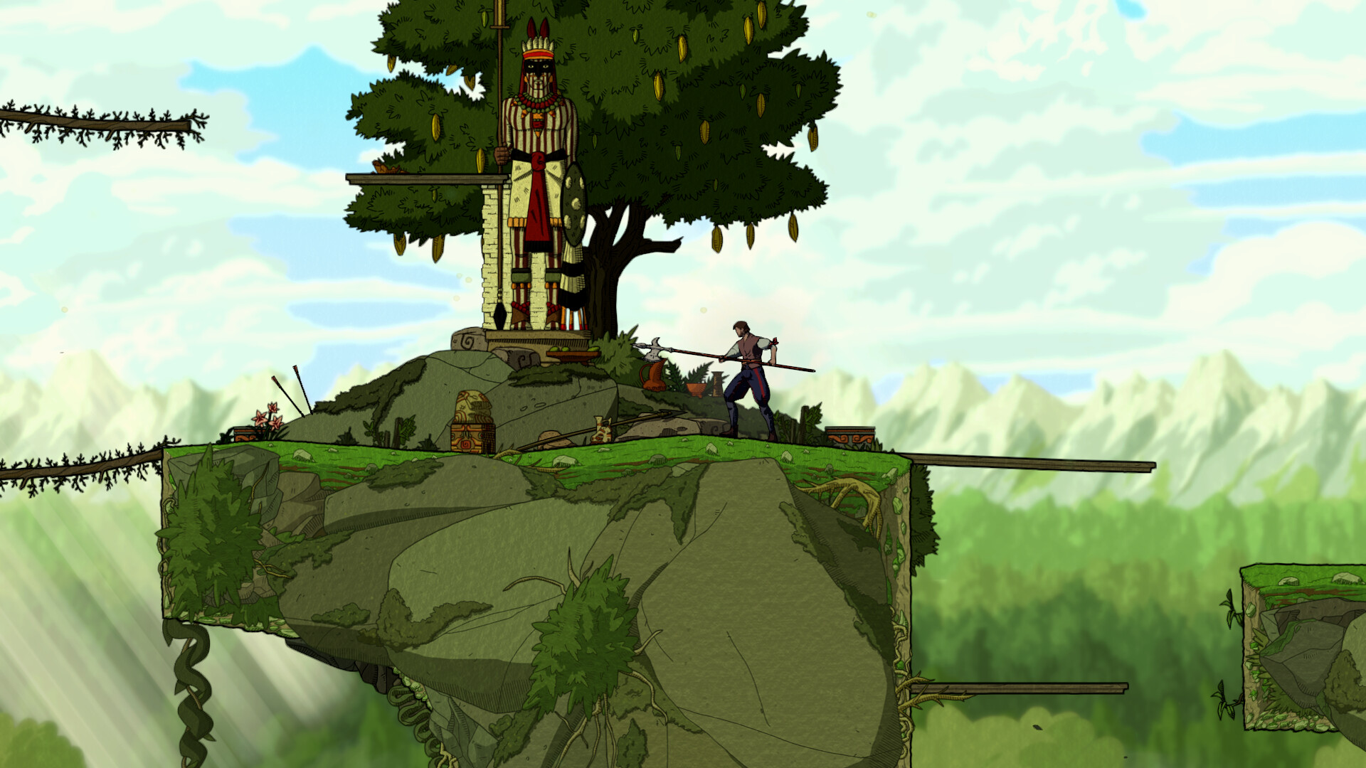 Immerse yourself in a Mesoamerican Metroidvania adventure, featuring vivid ligne-claire comic visuals set in the 16th century. Explore the intersection of two worlds in this spellbinding tale based on historical background with rich lore, dynamic combat, and a captivating OST. That is, a comicvania.