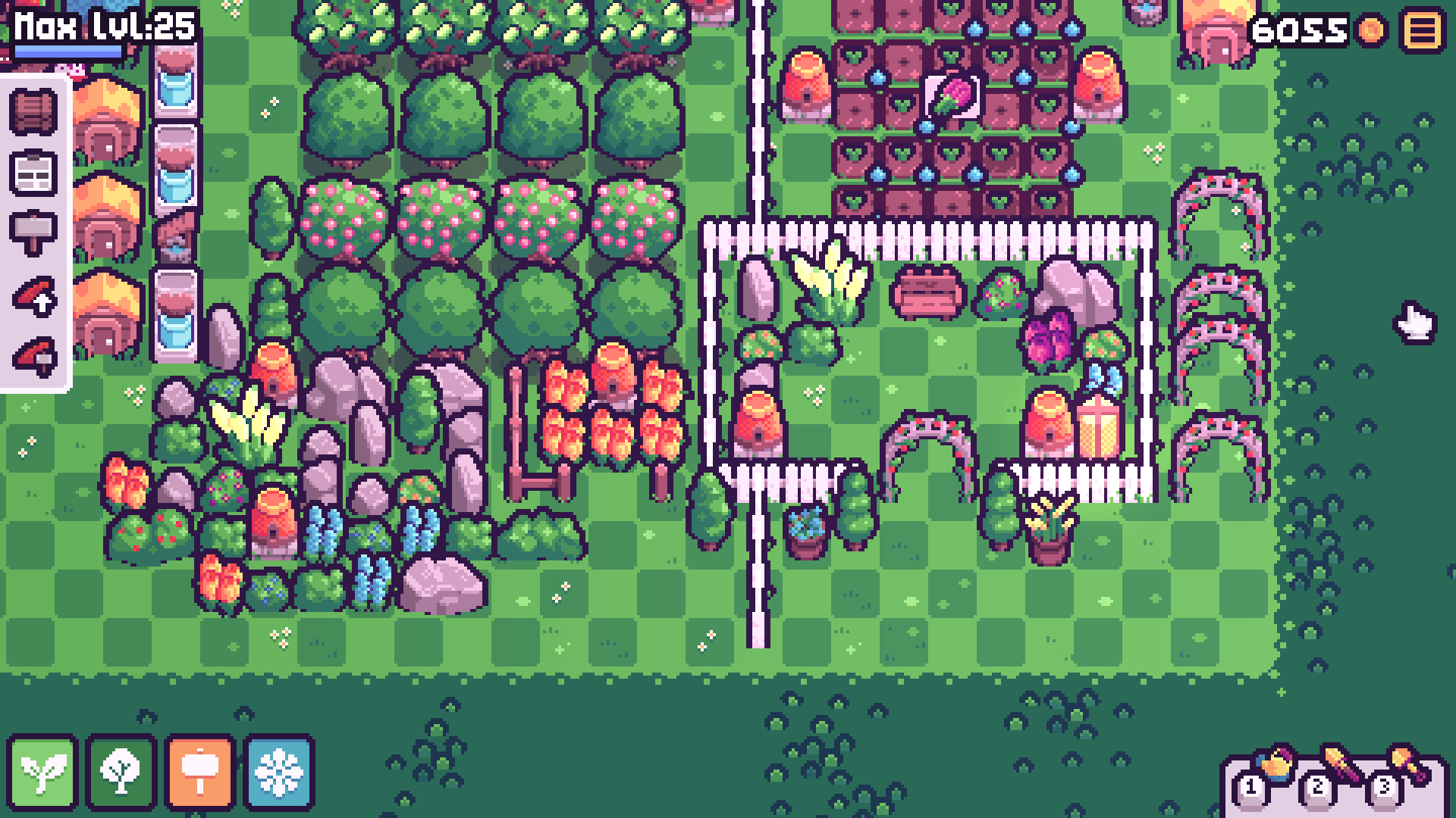 Harvest and produce items to gain money and experience. Level up to unlock new seeds and machines.