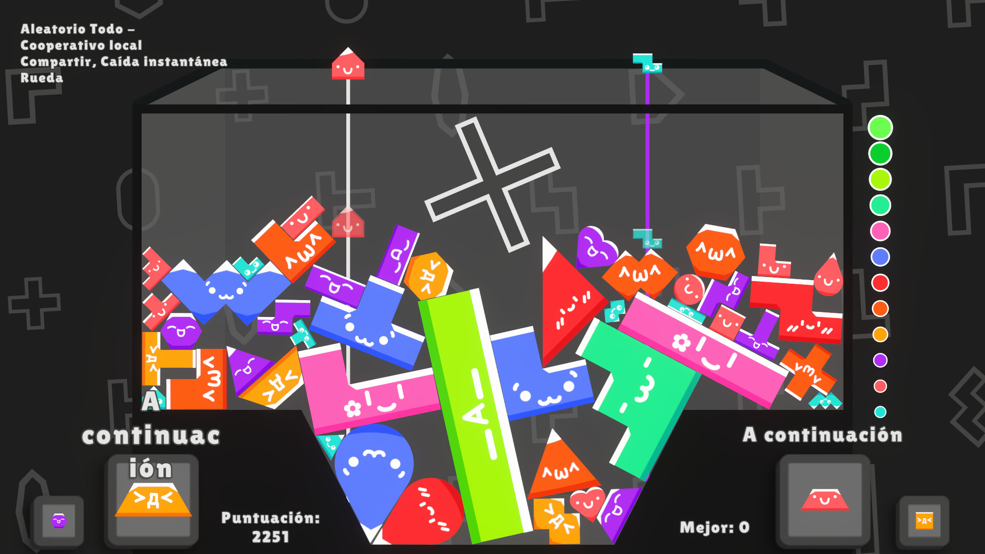 • Modo Velocidad - El suelo sube más rápido cada minuto, combina formas rápidamente para bajarlo - ¡o te quedarás sin espacio!