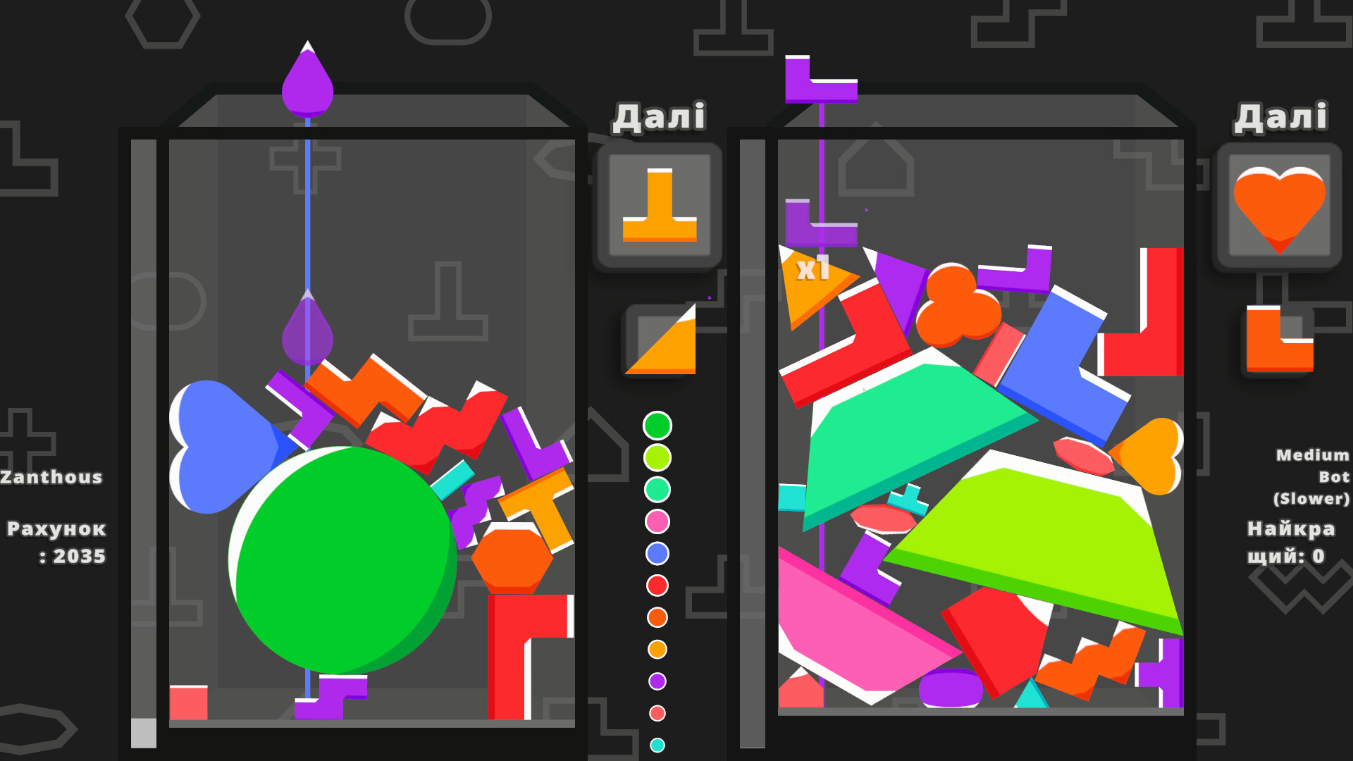 Комбінуйте будь-яку фігуру, режим гри та модифікатор і кидайте виклик друзям побити ваш рахунок!