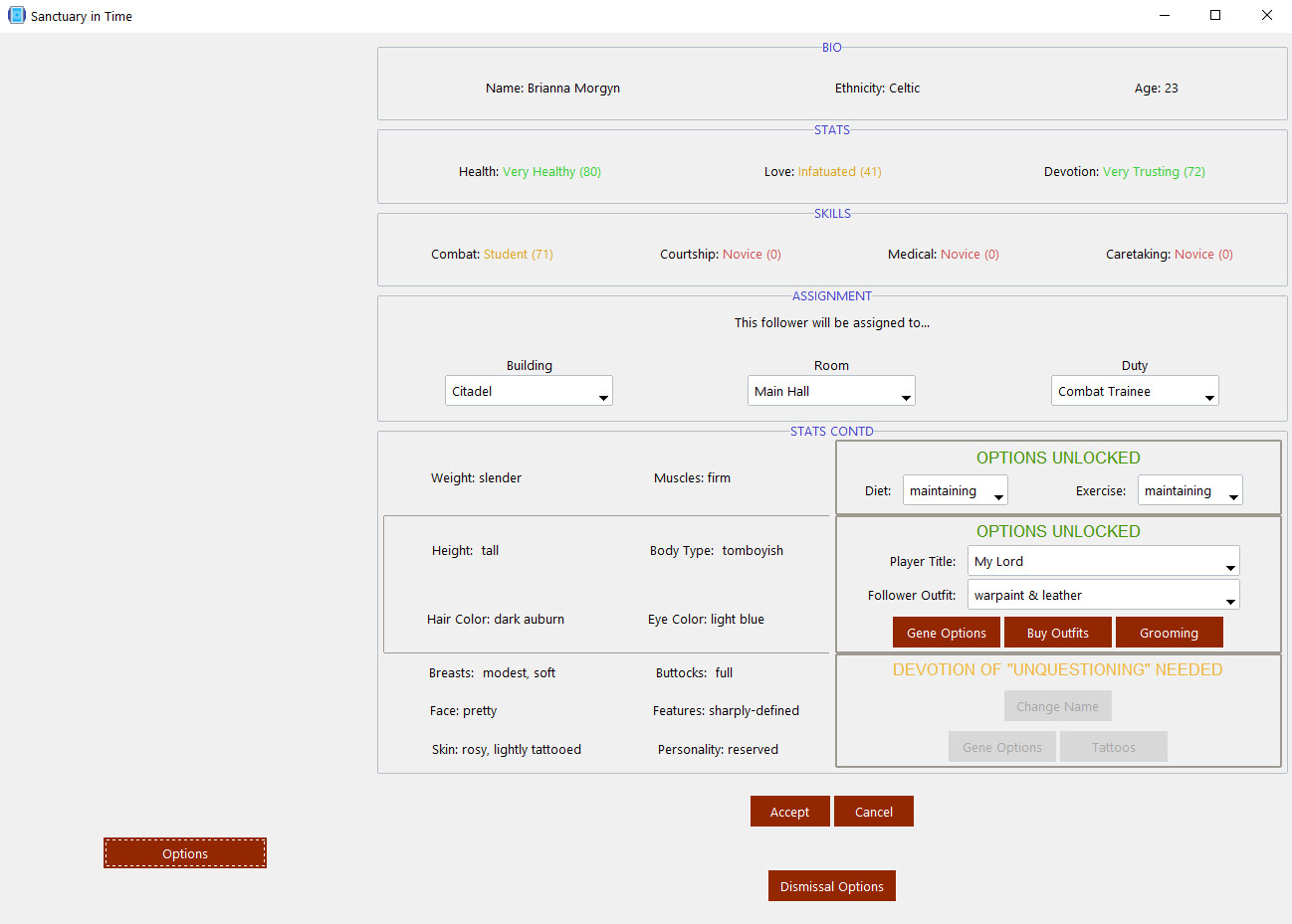 MATURE CONTENT WARNING: Sanctuary in Time is a game intended for mature audiences of 18 years of age or older. This game contains frank depictions of nudity, sex, violence, and death in a text-based format (i.e. no images/visual depictions).