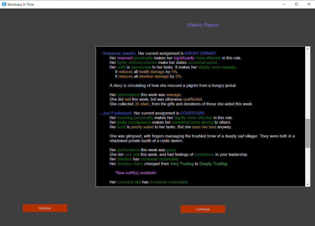 MATURE CONTENT WARNING: Sanctuary in Time is a game intended for mature audiences of 18 years of age or older. This game contains frank depictions of nudity, sex, violence, and death in a text-based format (i.e. no images/visual depictions).