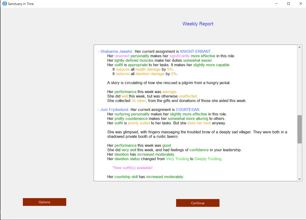 MATURE CONTENT WARNING: Sanctuary in Time is a game intended for mature audiences of 18 years of age or older. This game contains frank depictions of nudity, sex, violence, and death in a text-based format (i.e. no images/visual depictions).