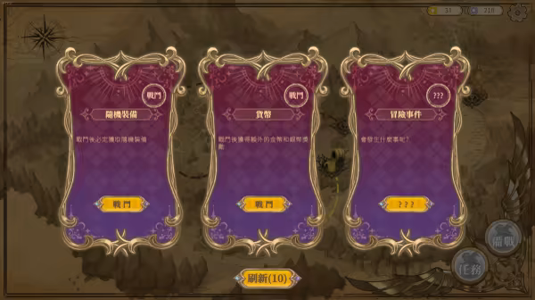 每一場戰鬥結束後,玩家需選擇一個路線前進,可以選擇繼續戰鬥,或是選擇隨機事件或購買/合成裝備,每一種選擇背後都充滿了機遇與風險。