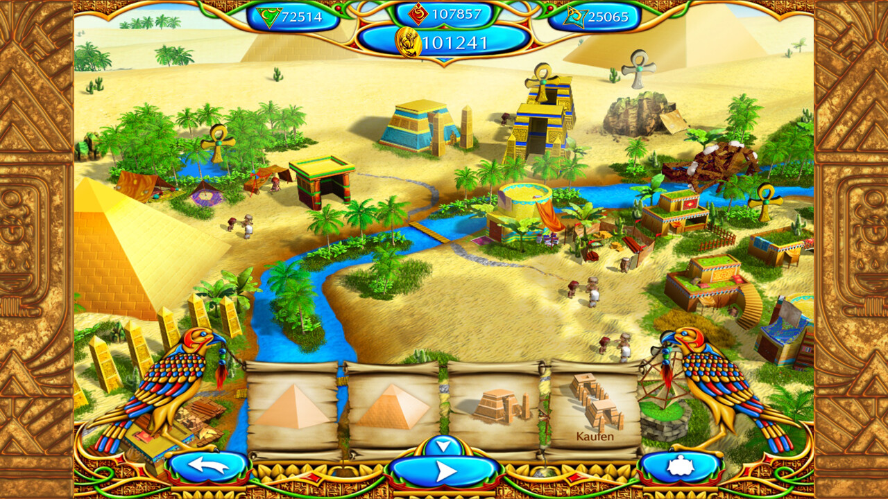 Kehren Sie zurück in die Welt des Alten Ägyptens und erbauen Sie eine zauberhafte Stadt! Erspielen Sie Gold und Materialien, um Häuser und Tempel errichten zu können.