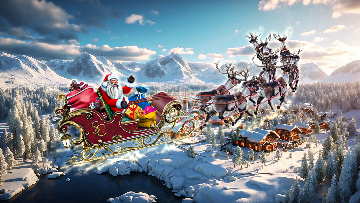 The Toys are made and it’s Christmas Eve! Rudolph & team are hitched to the Sleigh. Santa flies around the World while Kids are asleep, or are they? … soon it’s another sensational Christmas Morning.