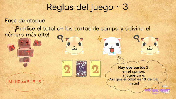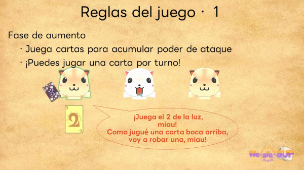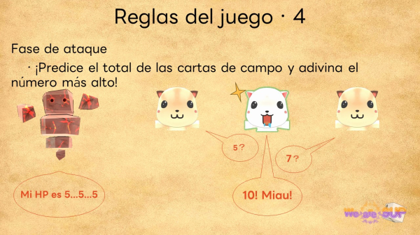 Los jugadores juegan cartas de mejora una por una de la mano repartida para acumular poder de ataque.