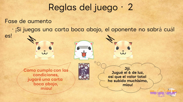 Las cartas se pueden colocar boca abajo cuando se cumplen las condiciones. ¡Es una situación ventajosa donde solo el jugador conoce el valor de las cartas!