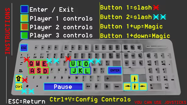Use your keyboard to control the character and slash the enemies to go through 12 stages and win this game.