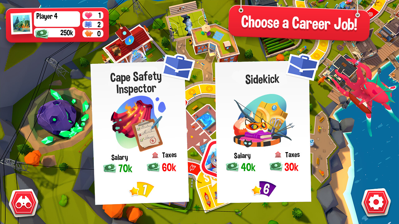 As you approach retirement, choose between relaxing at the Heroes Resort or blasting off as a Multiverse Traveller for intergalactic adventures! In the Superhero World, every decision propels you into a world of extraordinary possibilities!