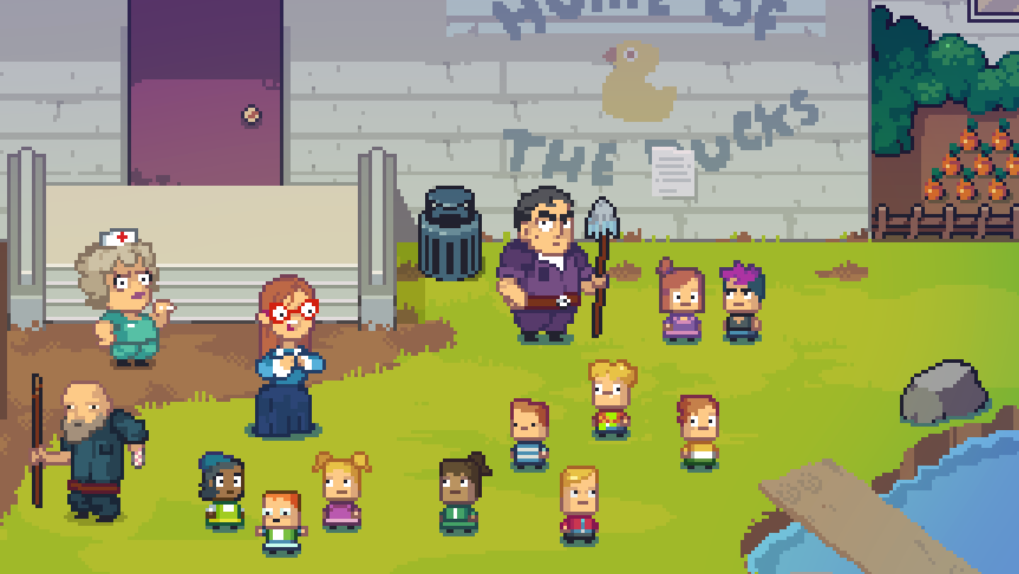 Welcome to Kindergarten 3! It's now Wednesday and the kids have been sent to yet another new school filled with mystery and violence. Green goo is seeping out of every corner. The principal and other kids have gone missing. The teacher speaks only in rhyming songs and there's a gator in the pond. Typical kindergarten things. It's up to you to help everyone and figure out what's going on.