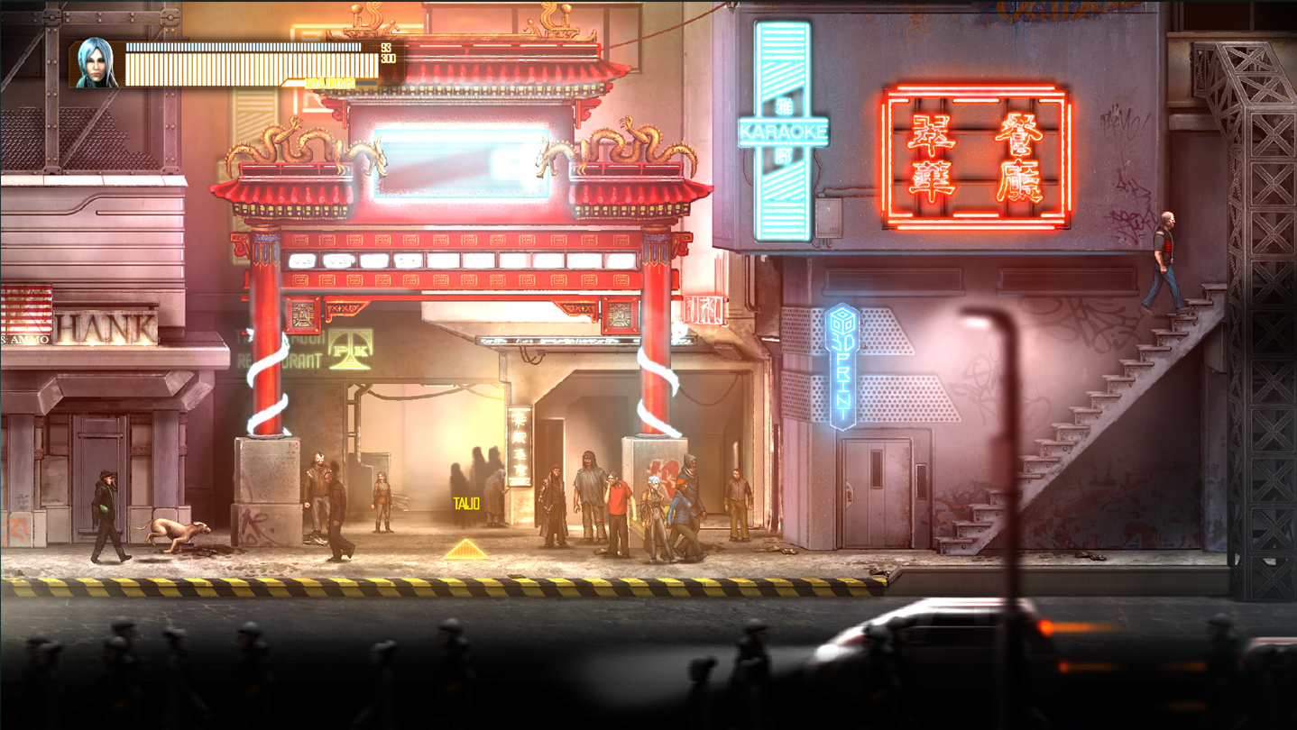 Explore, fight, talk and hack your way through a rich cyberpunk world in this 2D action-RPG!