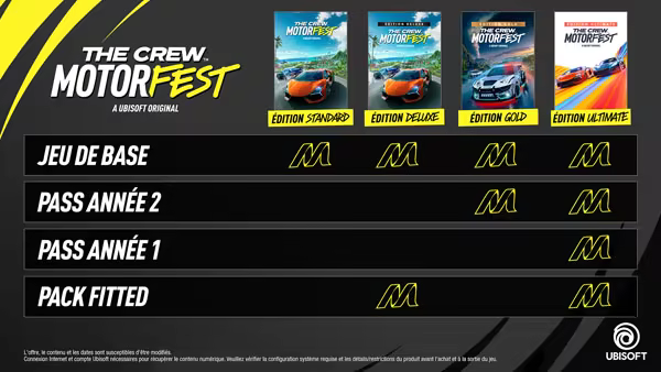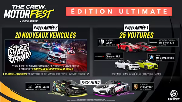 Obtenez le jeu de base ainsi que le Pack Fitted Ultimate grâce à The Crew Motorfest Deluxe Edition, comprenant :