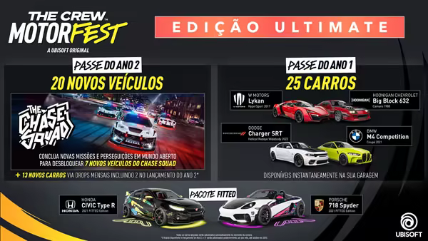 - Obtenha 25 veículos ao longo do Ano 1 do The Crew Motorfest com o Passe do Ano 1.