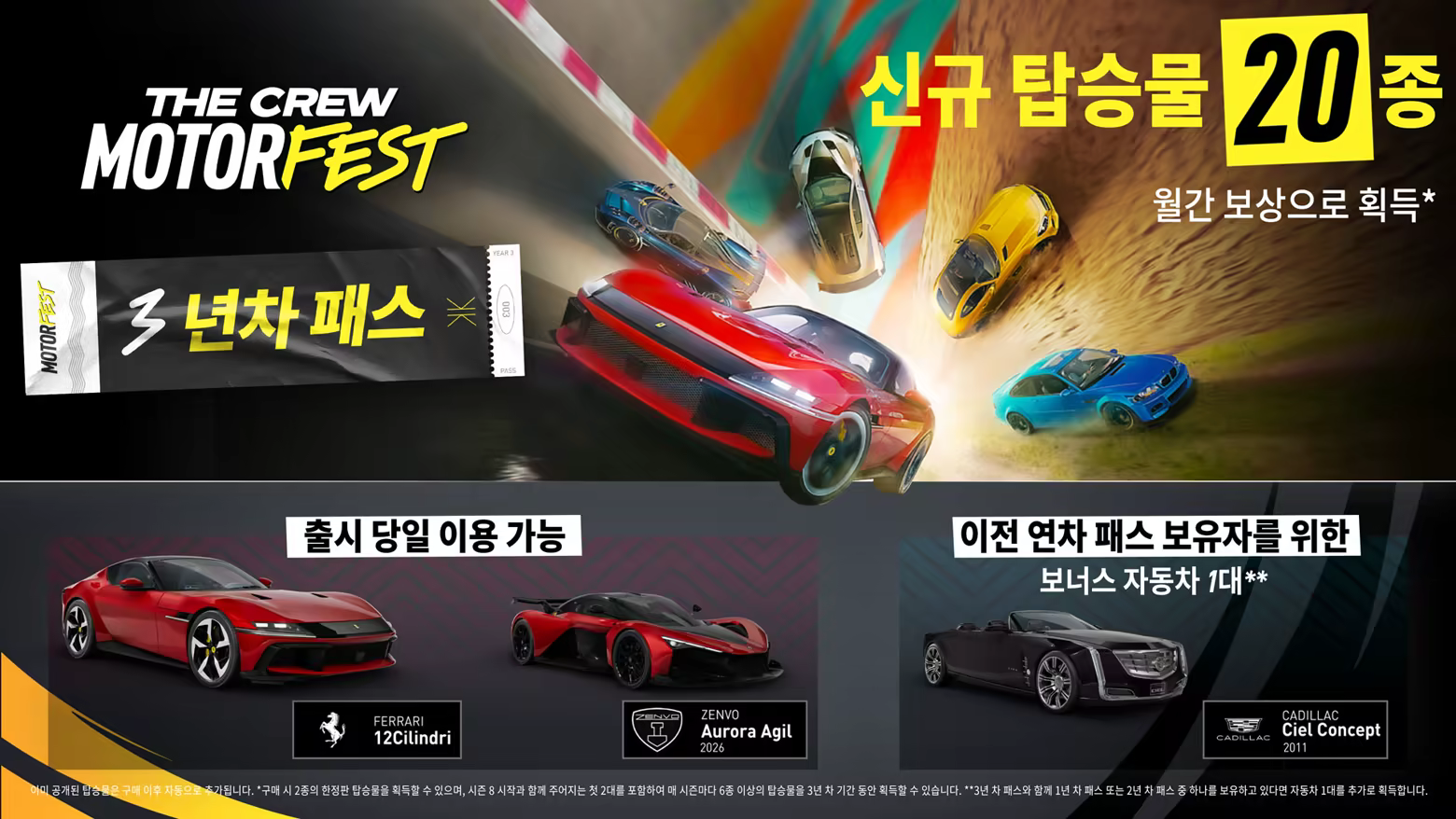 - 월간 드롭으로 총 20종의 신규 탑승물 제공, 출시 당일 전용 탑승물 2대 포함(Ferrari 12Cilindri (2025) 및 Zenvo Aurora Agil (2026)