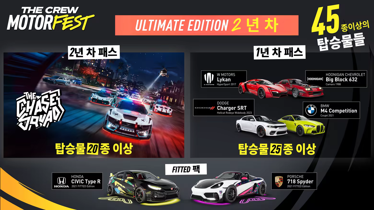 21종의 탑승물로 Motorfest 경험을 최대한 만끽하고 여러분의 컬렉션에 추가해 보세요! 3년 차 패스 구성품: