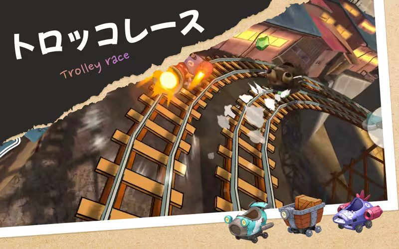対戦相手の邪魔ができる攻撃パーツや、スムーズな走行を手助けしてくれるコーナリングパーツ、急加速パーツなど、トロッコの性能をアップグレードするアイテムがたくさん。