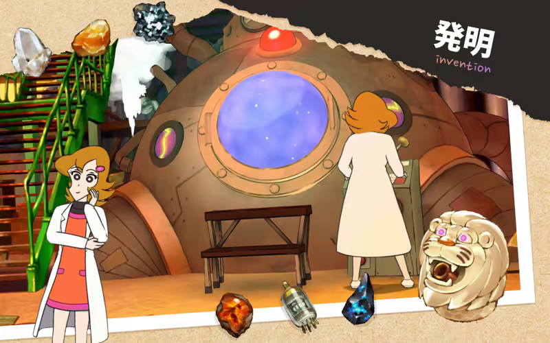 発明品を生み出す不思議な機械でお姉さんといっしょにあっとおどろく発明をしよう。