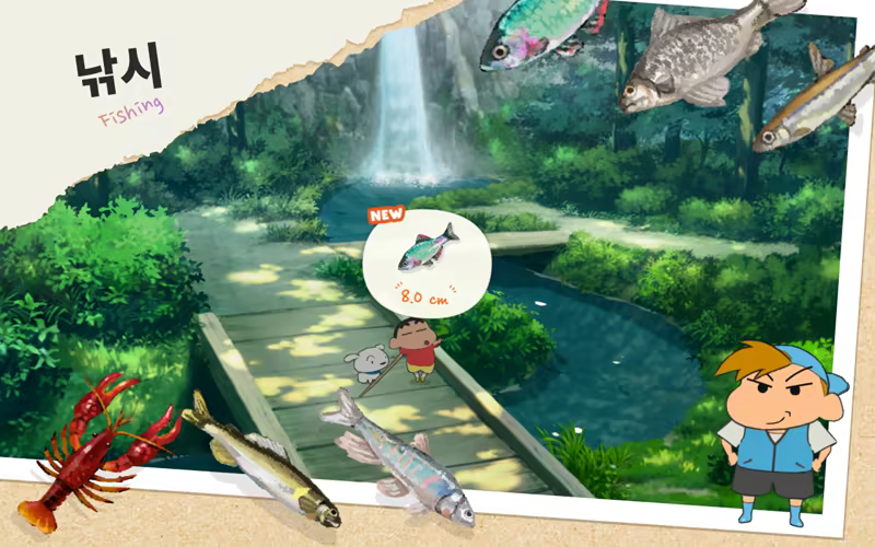 짱구가 잡은 물고기나 수집한 식재료가 신메뉴의 재료가 되기도!