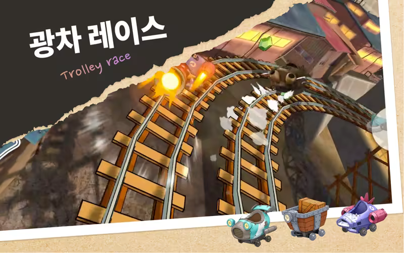 상대 선수를 방해할 수 있는 공격 파츠나 부드러운 주행을 도와주는 코너링 파츠, 급가속 파츠 등, 광차의 성능을 업그레이드할 수 있는 아이템이 다양.
