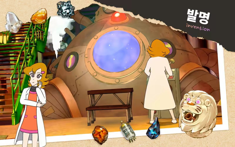 발명품을 만들어내는 신기한 기계로 발명가 누나와 함께 깜짝 놀랄만한 발명품을 만들자.