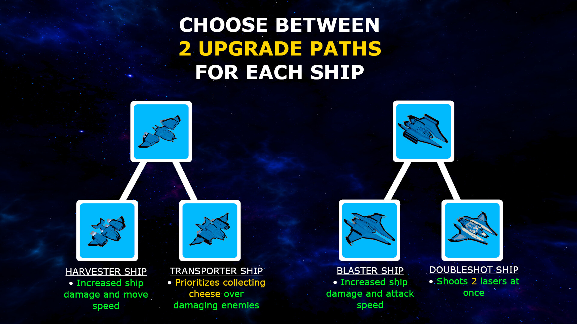 Utilizing a unique blend of tower defense mechanics and RTS elements like resource management, players must skillfully collect cheese scattered throughout the cosmos to fuel their defensive efforts. Each morsel of cheese collected serves as currency, allowing you to purchase and upgrade spaceships tailored to your tactical preferences.