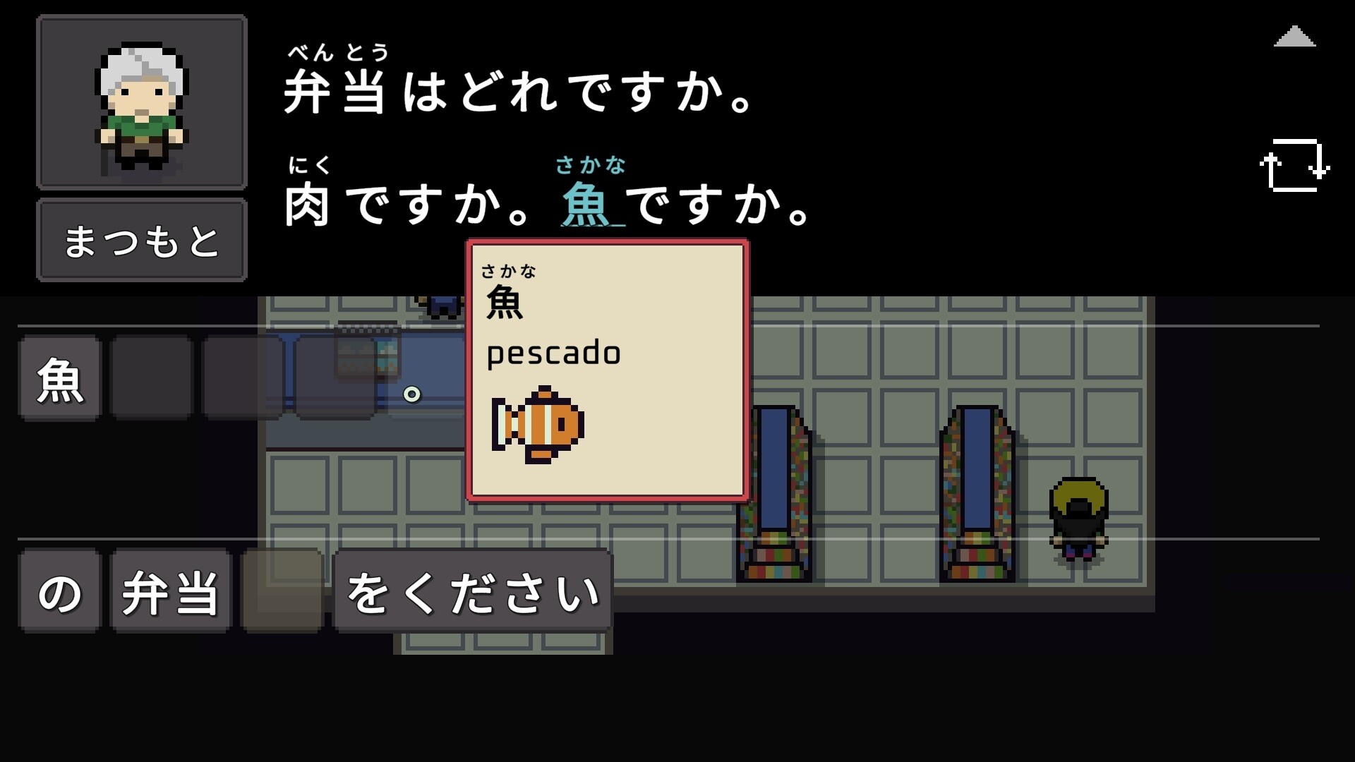 Wagotabi es una divertida y envolvente aventura RPG ambientada en el Japón real. Totalmente accesible para principiantes, se enfoca en enseñar primero las palabras y conceptos gramaticales más prácticos, en situaciones concretas: pedir direcciones, ordenar un Bento, expresar tus gustos y disgustos, ¡y mucho más! Hiragana, Katakana y Kanji se introducen progresivamente a medida que expandes tu vocabulario.