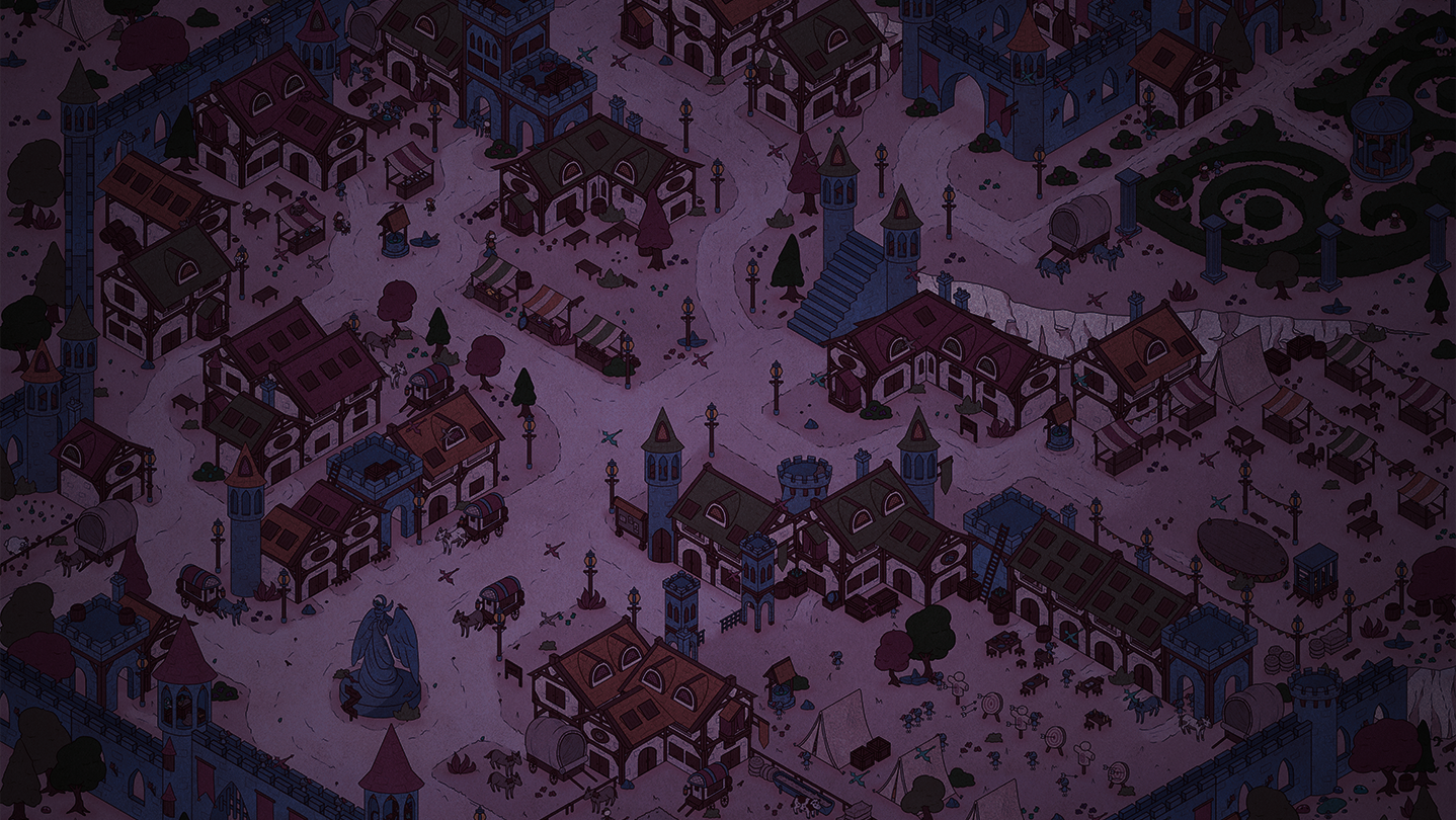 • Hand-Drawn Scenes: Each scene is meticulously illustrated and animated to create a unique isometric visual